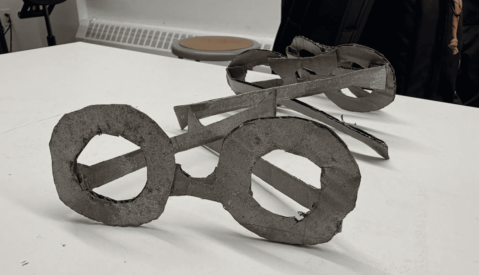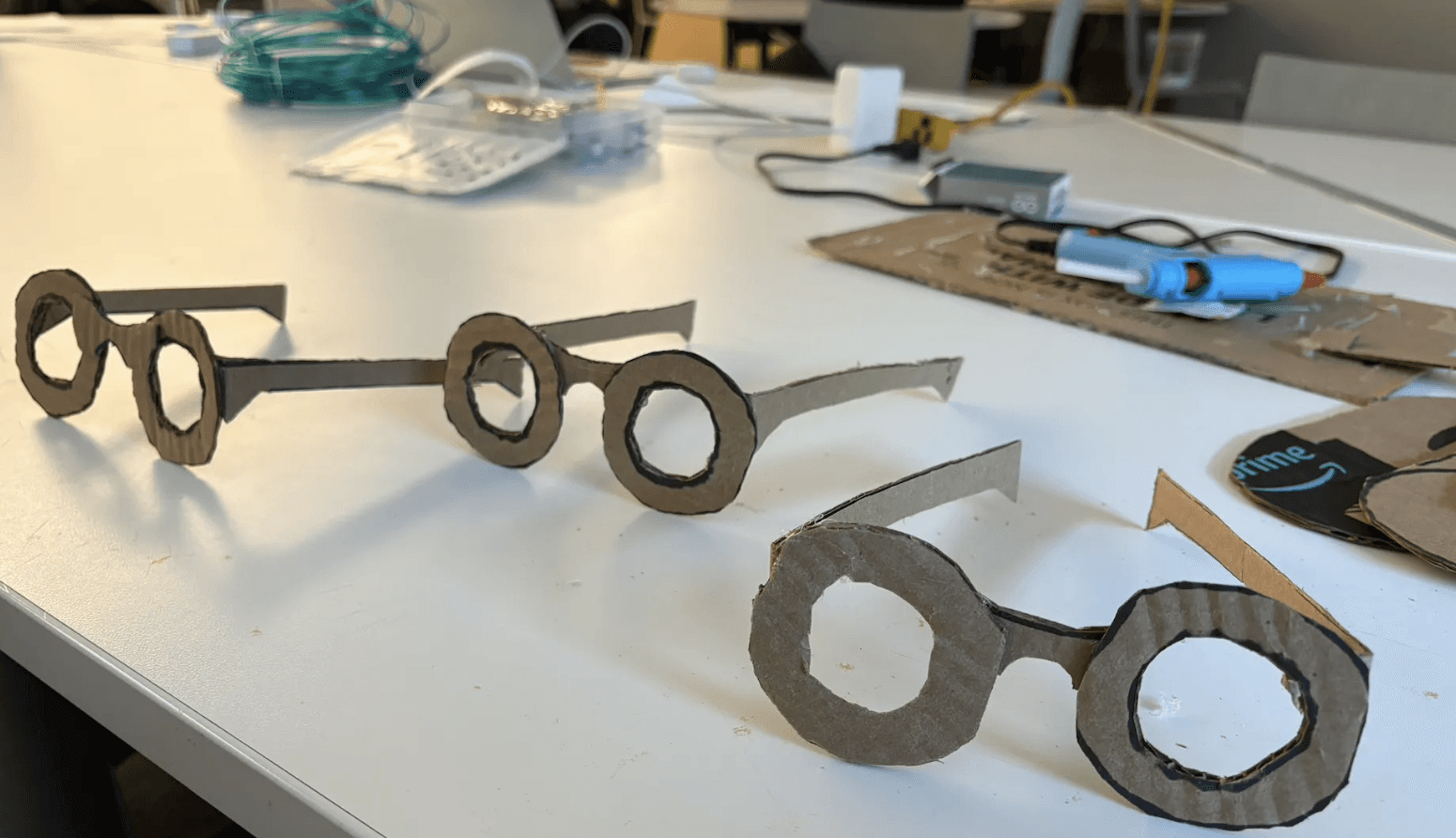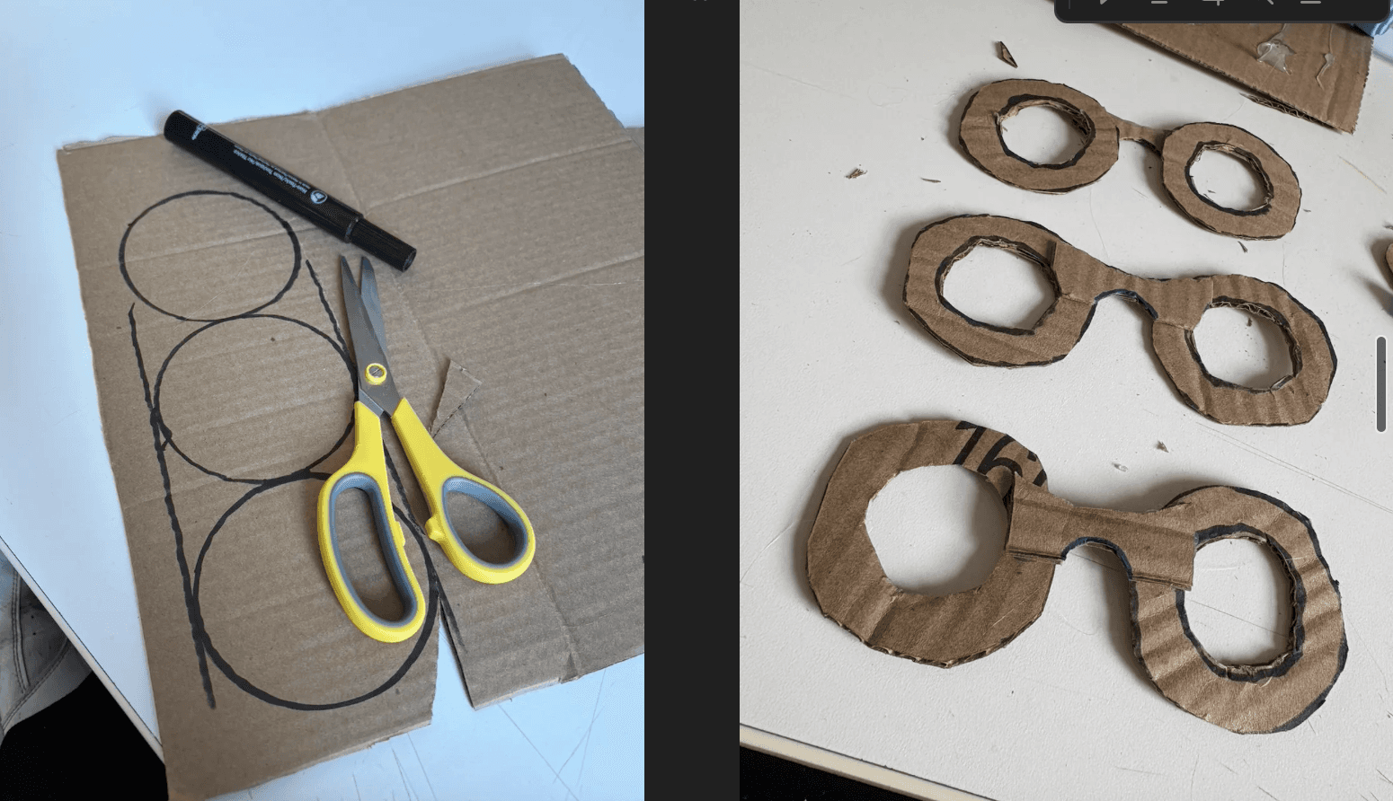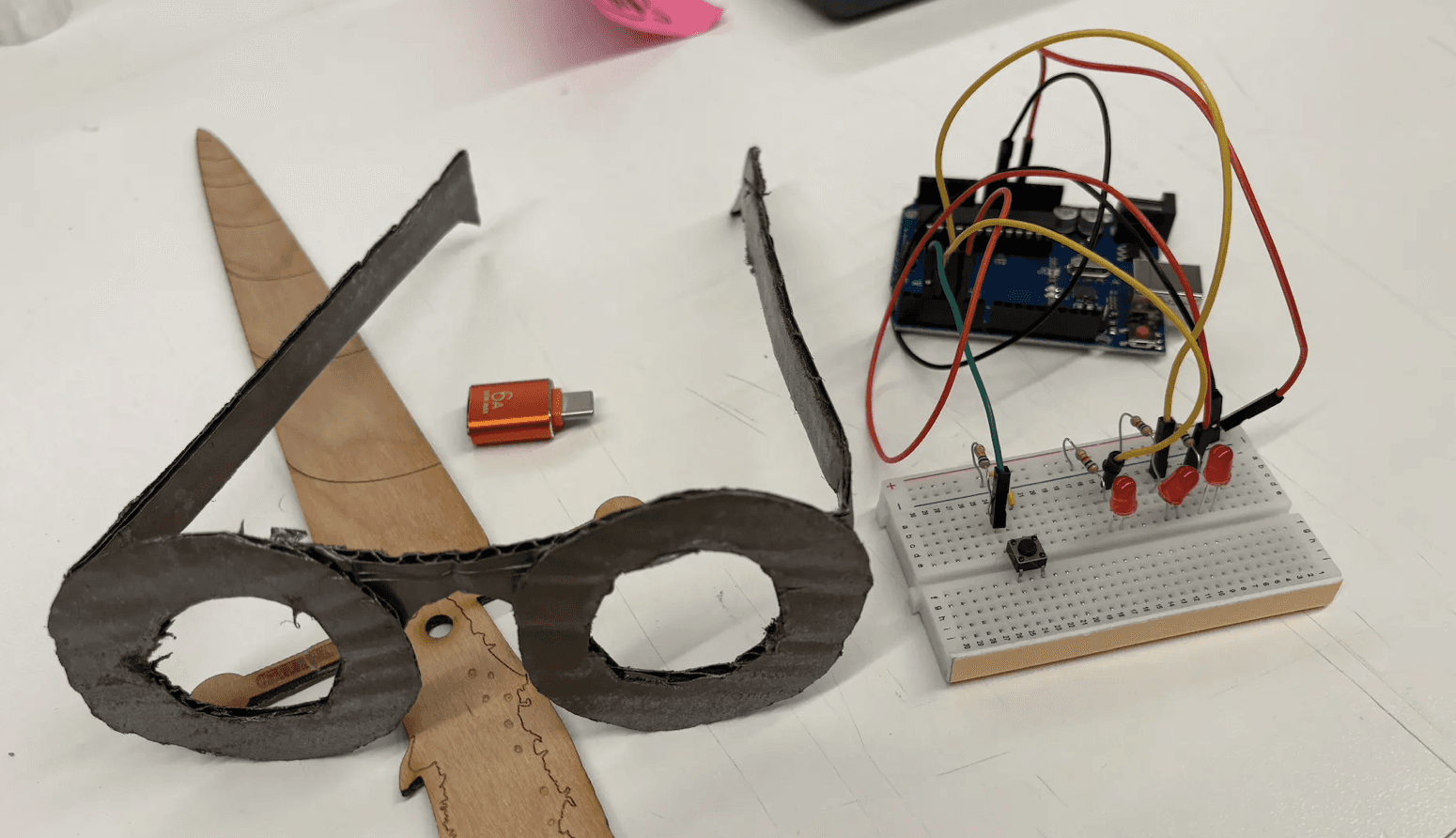 The Horns of Justice was the final project that included a total of three of my classmates, including me. In an attempt to combine both traditional and digital creative making methods, this project stands as a means of unifying coding, laser cutting, weaving, and even Arduino. Presented in the format of Superheroes that serve our University, each section of our project covered part of a costume that we all wore to the final showing. My part was the 'Laser Beam' Eyewear that unified both Arduino and physical cardboard sculpting.